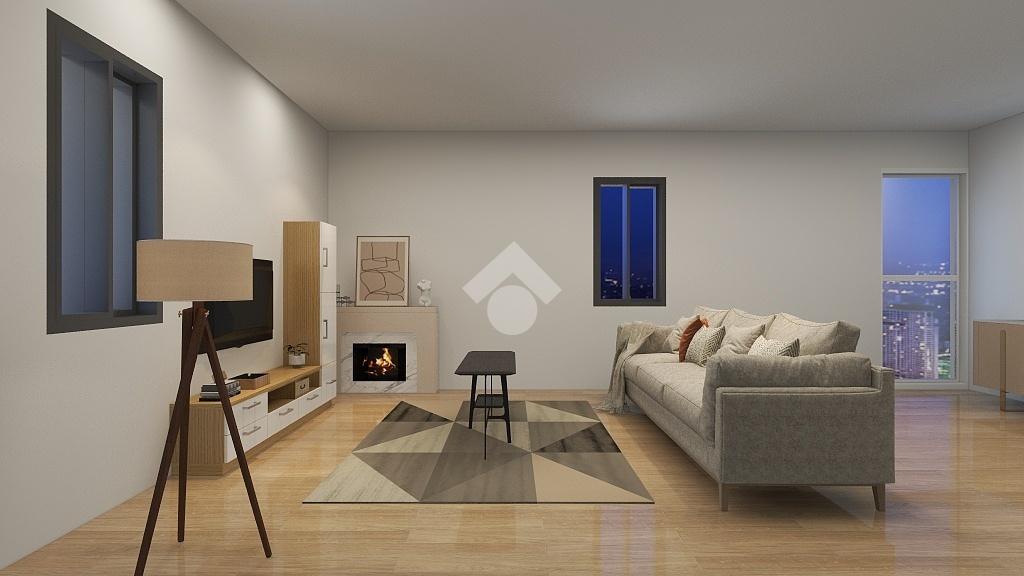Dalla loggia esclusiva, si accede all'ampio e luminoso soggiorno, completo di camino e accesso al portico di proprietà.